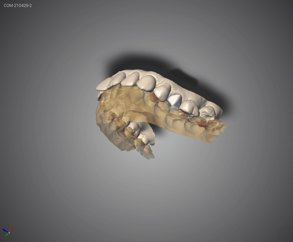• Prosthetic crowns attached to dental implants, fixed with individual implant connectors.
